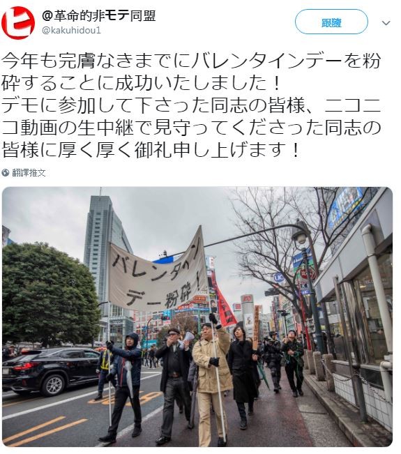 〔即時新聞/綜合報導〕西洋情人節將至,然而日本民間組織「革命的非モテ同盟」(革